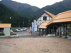 軽い散歩には蕎麦処裏の緑地が利用できる。以前は広い緑地だったが、温泉施設が出来て狭くなった。裏山の遊歩道に登ると伐採した樹木の跡を熊や鳥の姿に彫刻した「切り株動物園」があって結構面白い。駅裏の旧街道を揖斐川沿いに歩いても良い。 | |