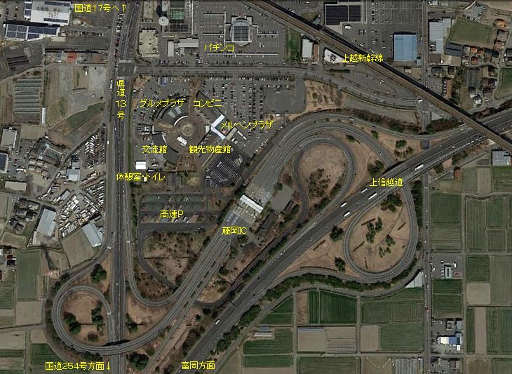 上信越道上り線のハイウェイ・オアシス。周辺に店舗も多く、休日の満車も珍しくない。