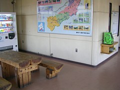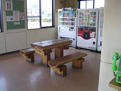 駐車場の国道寄り別棟で24時間トイレを併設。丸太のテーブルセットが1台と自販機が置いてあり、ちょっと一服する程度。 |