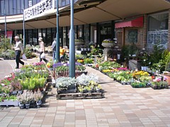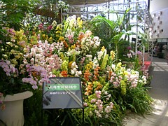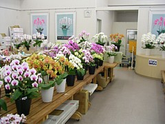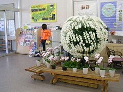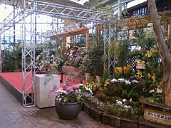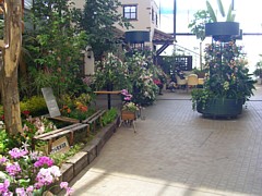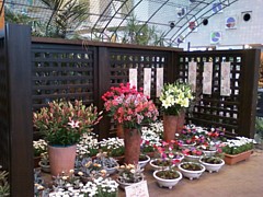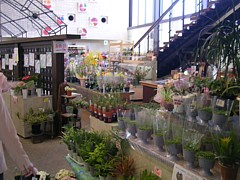 温室内部にレストランのある「花の交流館」は観葉と花鉢がメイン(10〜19時・1/1休)、広場の向いには群馬産をメインに扱う