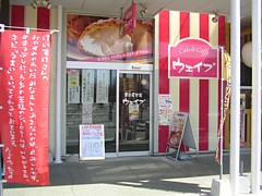 グルメ棟の中心にケーキと軽食のウェイブ、テイクアウトもOK。その他、軽い屋台程度が広場を囲んで点在している。 |