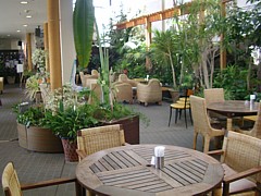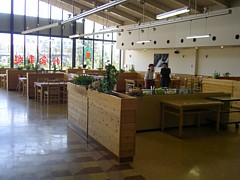温室内に値段も手頃で雰囲気の良いレストラン。産直野菜棟の左側にもファミレスっぽい店があり、御飯の種類が多くて安い。 |