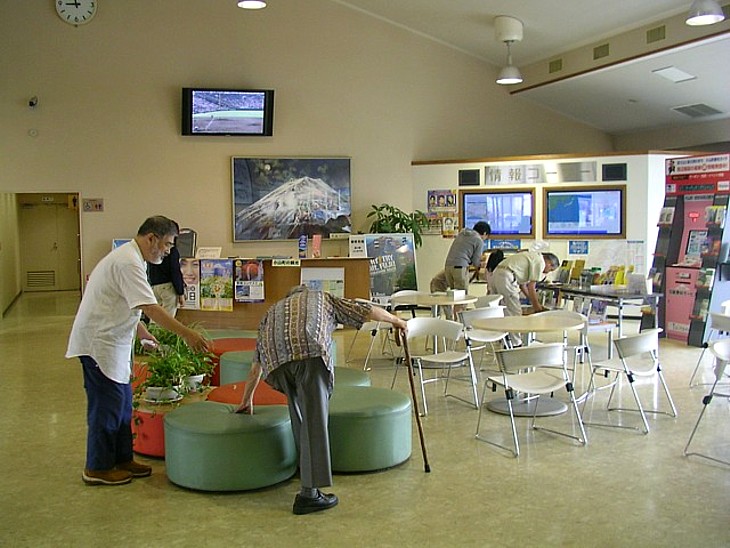インフォメーションを兼ねた休憩コーナーは明るくて快適、ホテルのロビーっぽい雰囲気がある。