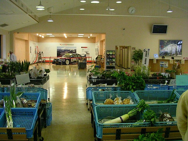 同じフロアにレースカーと野菜売場の組み合わせ。農産品の量は多くないが、価格は安めだ。