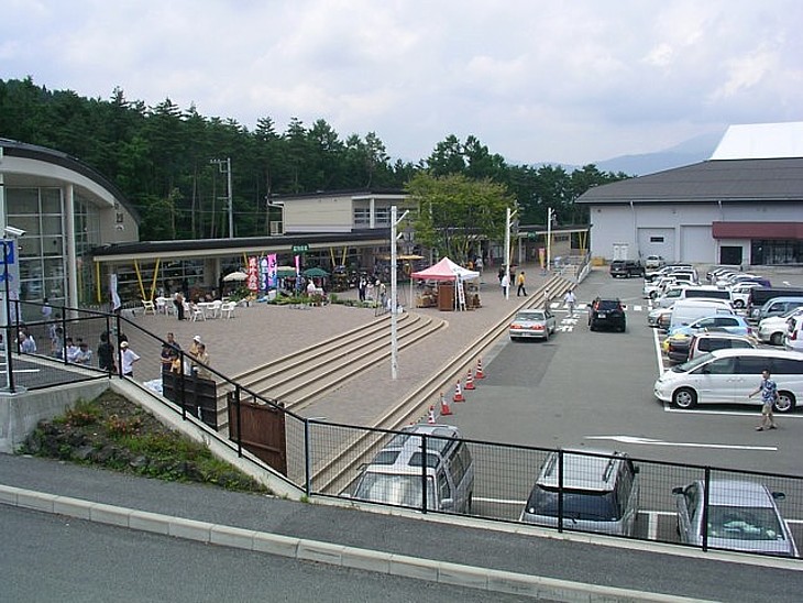 駅舎前はやや高い広場。歩行者と車が完全に分離されているが通路に駐車する不心得者も多い。