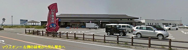 国道の海側には歩道が設けられているから落ち着いて歩ける。駅舎の裏手で水遊び可能(石が多くて特に快適とは言えない)。 | |