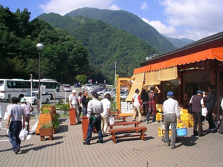 別棟の産直野菜コーナー。一般的な野菜と言うよりも山村の物産やキノコや果物、春なら山菜などの方が多い。