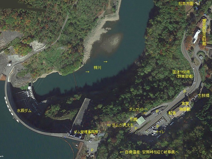 上高地や飛騨高山に向う観光道路沿い、観光シーズンの休日は観光バスの立ち寄りなどで酷く混雑する。