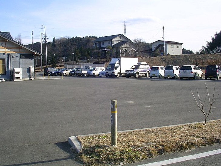 食事棟の裏側にも広い駐車場がある。こちらは従業員や出入り業者の車が主に利用するらしい。