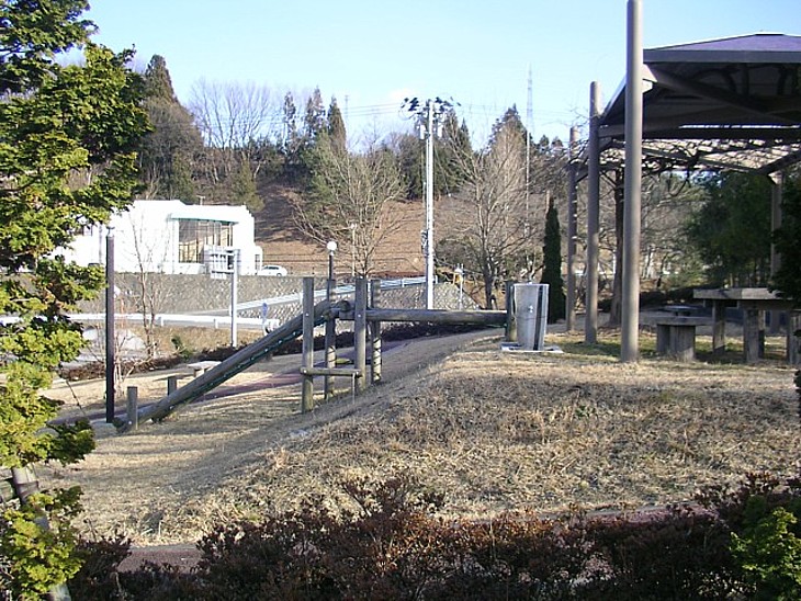 国道から見て駅舎左側の斜面を利用した「農村公園」。駅舎横の緑地に繋がっている。