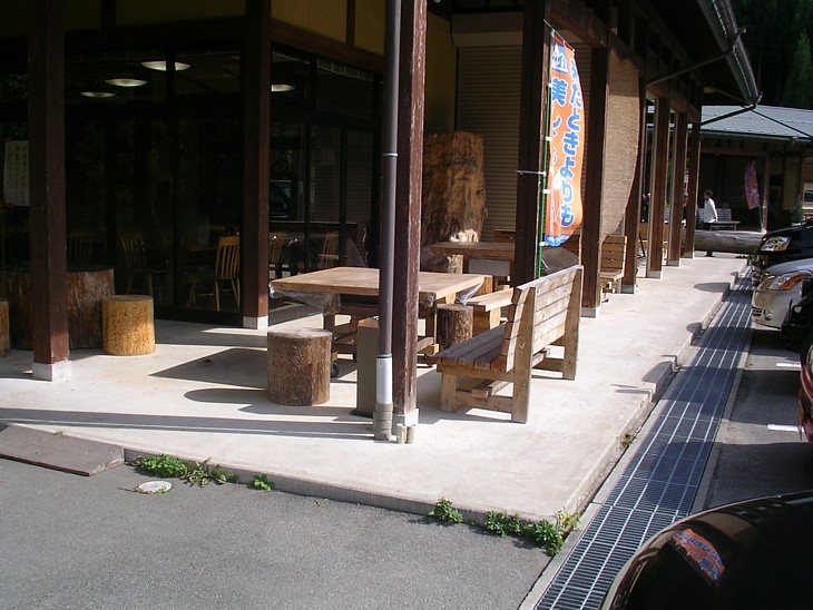 飛騨古川の市街から約4km西、名水「いぶし銀」の湧く林業の里。丸太を運ぶ手橇(修羅?)の像が迫力!