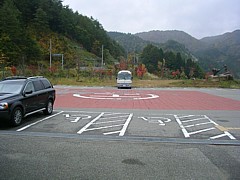 公称は大型車2台+普通車26台、広くはないが大型車の立ち寄りは殆どなく県道90号を使う観光客も少ないため余裕あり。 | |
