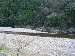 道路沿いに散歩スペースはないが裏手の富田川へ降りれば広い川原あり。流れが緩いため暖かな季節には水遊びも可能だ。 | |