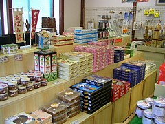 10時〜17時45分、ありふれた土産物と共に木工品・備長炭・梅の加工品・雑穀類が並ぶ。買い物は「中辺路」の方が面白い。 | |