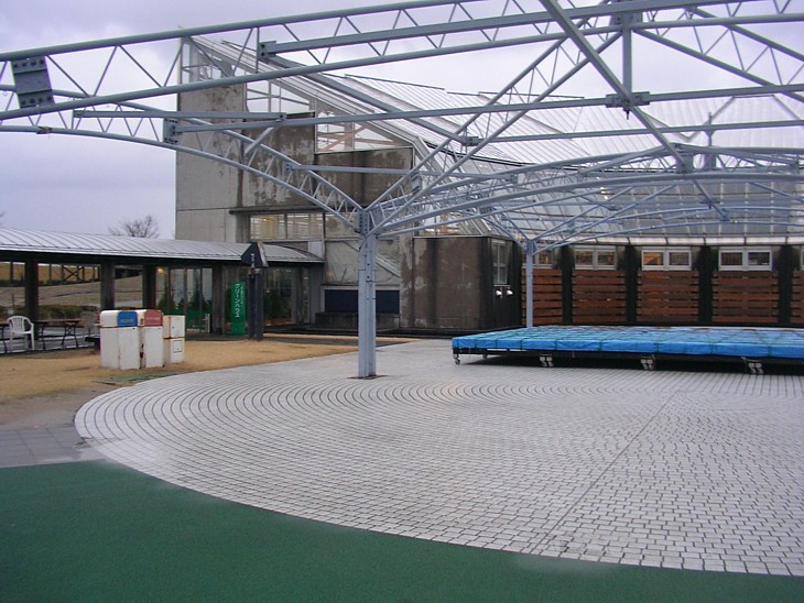 ドームの裏はイベント広場、右側に大正から昭和の新潟をビジュアルで紹介する「アピール館」がある。