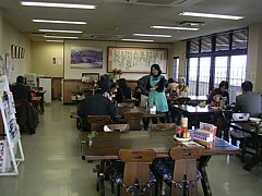 店頭にベンチが置いてあるだけで、駅舎内に休憩スペースなし。案内機能も殆どゼロで、食堂入り口にパンフがある程度。 |