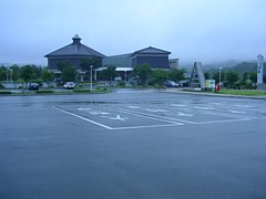 公称は大型車13台+普通車174台だが、これは博物館の駐車場を含んでいる。道の駅としては4台プラス50台程度か。 |