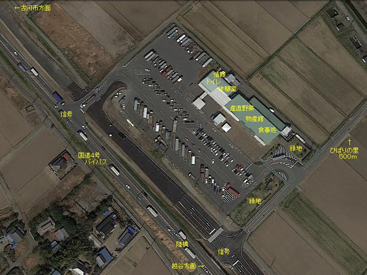 駐車場も広く施設も充実している。交通量の多い4号バイパス沿いにあるため大型車の休憩・停泊が多い。