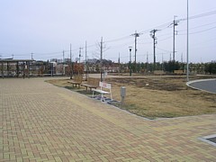 駅舎右側の小さな芝生で遊べる。駅の裏は畑地で散歩に不自由はないが、舗装道路だけなのでやや味気ない。 |