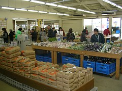 9時〜19時、豊富な農産品をメインに商品の種類は豊富で地元産の豚肉なども扱う。野菜以外の価格は特に安くはない。 |