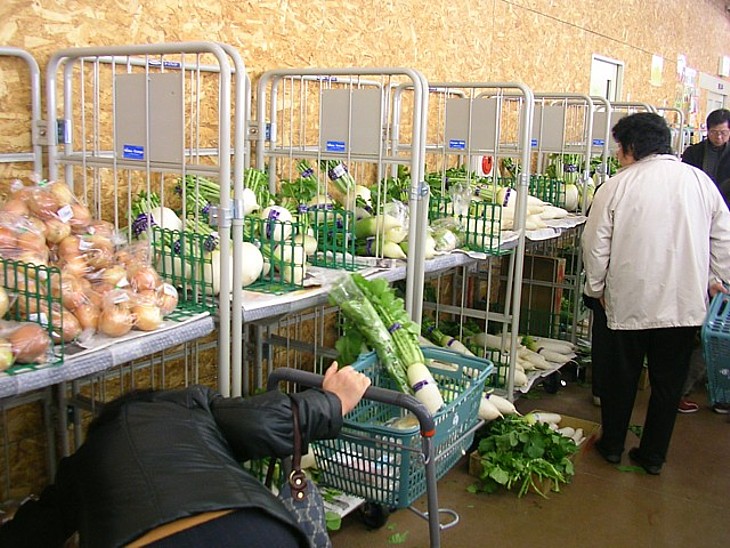産直野菜売り場の風景。年末が近かったため買い物客も多く、並べられている季節の野菜の種類も豊富だった。