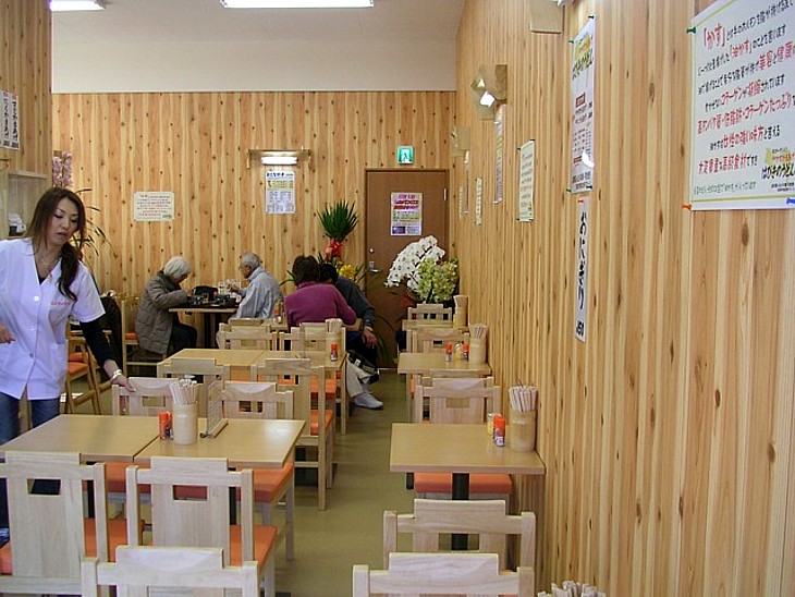左隅の「はびきのうどん」の店内風景。きつね・つきみは550円、てんぷら700円、にく750円..やや高い?