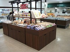 アイス工房や富次郎(タコヤキ・鯛焼き)や惣菜店など各種あり。イチゴのシーズンには「とちおとめジェラート」(400円)も人気。