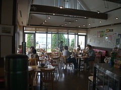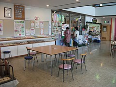 食事処の入口(ジェラート工房の前)にテーブルと椅子が多数あり。決して落ち着ける雰囲気ではないが持参の弁当を食べる場合はすぐ前にある惣菜店も利用できる。ソファなどを設置すればもっと快適に過ごせるのだが。