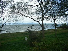 裏手の緑地で遊んでも良いし、川沿いの小道を歩いても良いし、暖かい日なら琵琶湖で水遊びもできる。 |