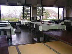 物産交流館の奥が軽食コーナー。10〜17時・火曜休み、スパゲティ・ラーメン程度は食べられる。 |