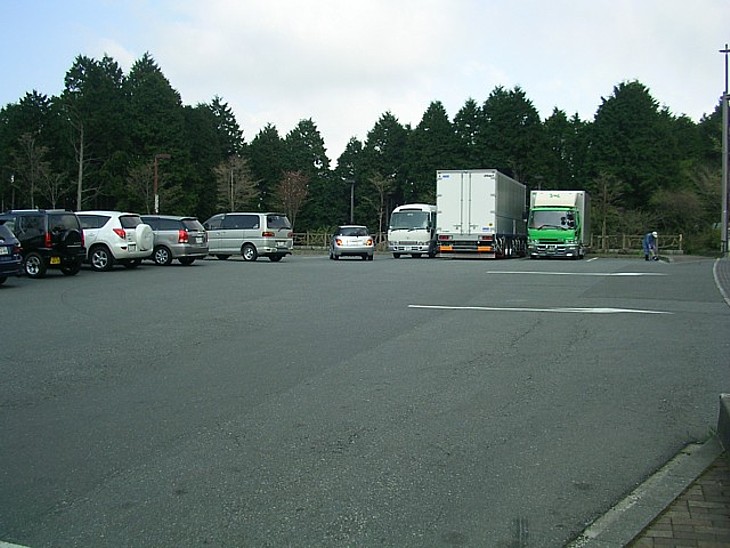 駐車場の峠側が大型車用。休日には普通車とバイクで溢れ、トラックは峠のエコ・Pを利用している。