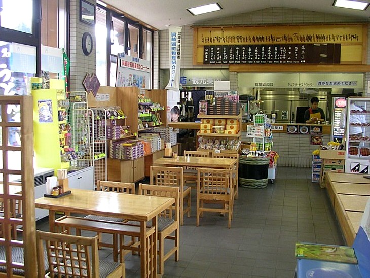 食事処は麺類がメイン、左に4人掛けテーブルが2卓と右に座卓が3台、20人程度は収容できる。