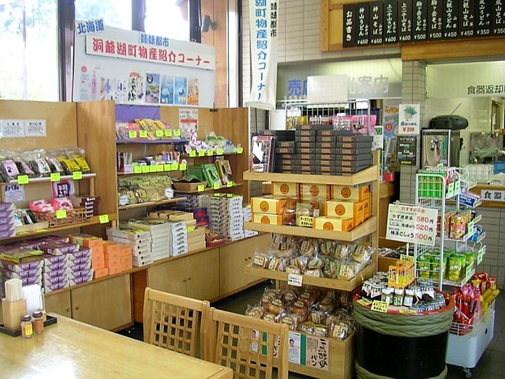 厨房前の物販スペース。これが商品の全てだから、買物は湖畔の土産物店を利用する方が良い。