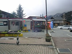 駐車場の売店で「おやき」やソフトクリームを扱っている。 | |