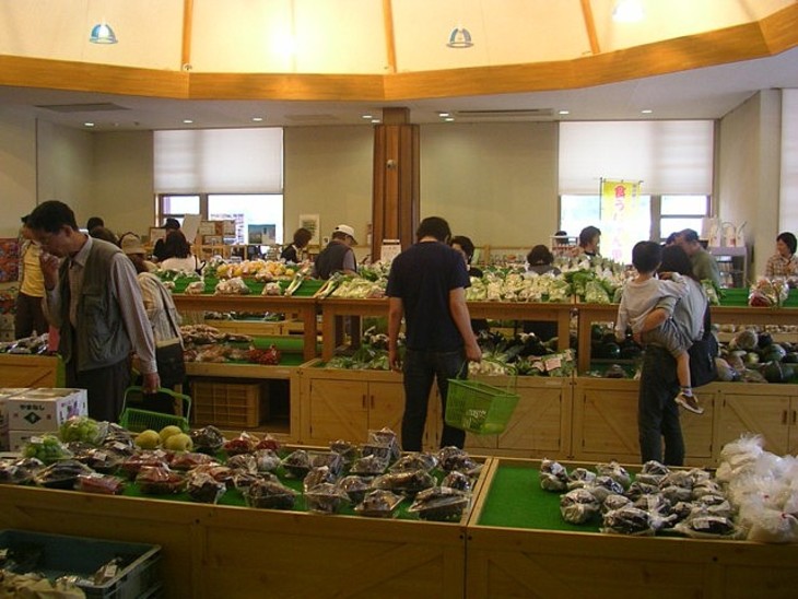 物産館は果物や野菜など農産品とその加工品が広いスペースを占める。隣のスーパーは辛いね。