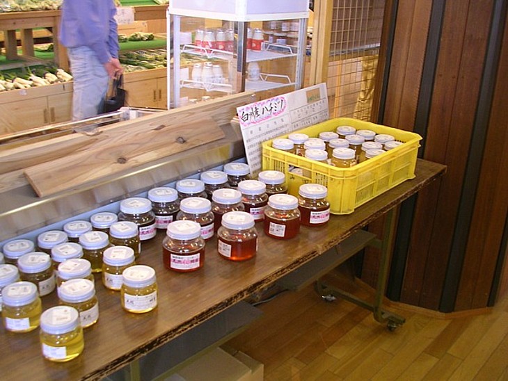 少し目を惹いた白州産ハチミツのボトル。花の種類で色や味が異なり、豊かな自然を思わせる。