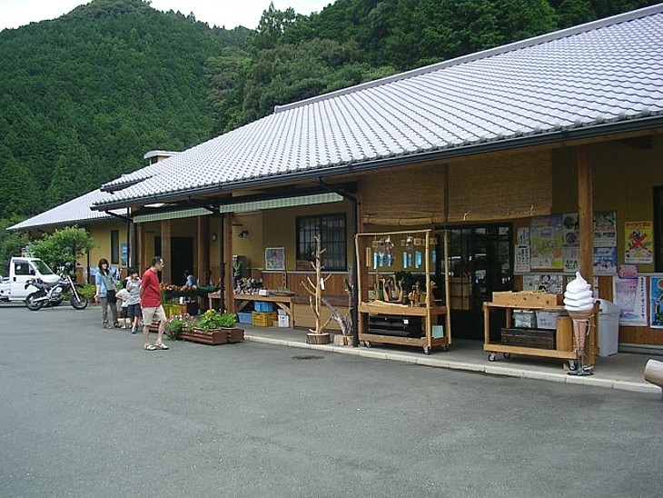 メイン駅舎は向って左側が物販コーナー、国道側に狭い食事処がある。店頭にも多少の売り場を設けている。