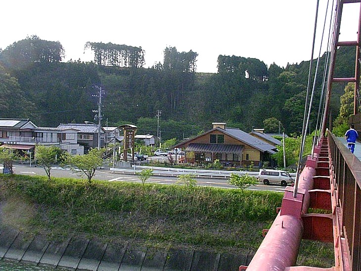 「夢のかけ橋」の途中から道の駅を撮影。車が通らないため学生のランニングコースにも利用されている。