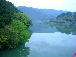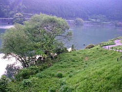 ダム湖に架かる「夢のかけ橋」での散歩が快適。通行は歩行者と自転車のみ、歩行者も殆どいないためノーリードでもOK。 | |