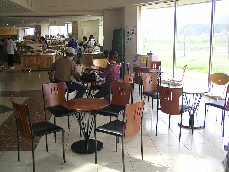 軽食コーナー「万年豊作」の右は気軽に利用できる休憩コーナー。軽食を利用しても良し、弁当を広げても良し。