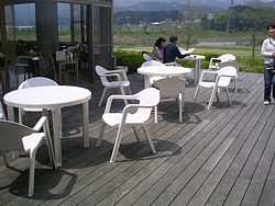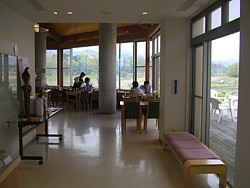 9時〜18時、軽食コーナーの隣に設備も整った広いスペースを確保している。展望も良く、持参の食事を摂る客も多い。 | |