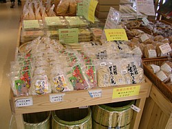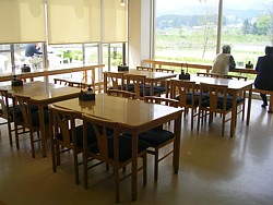 ● 物販コーナー横の「豊年満作」は9時〜18時(休日は17時)、広いテーブル席もあり簡単な食事(御飯類もある)もできる。 | |