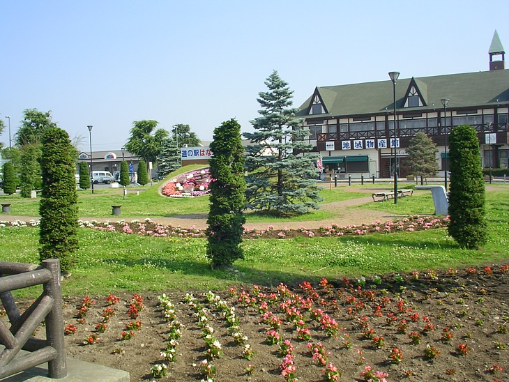 敷地が広いため緑地帯にも余裕がある。駅舎前には芝生が大きな花時計を囲んでいる。「花園」のシンボルだ。