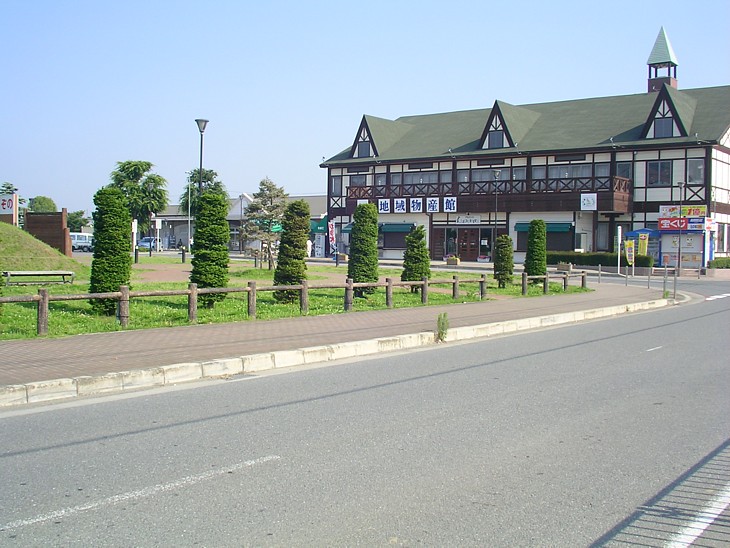 信号から駅舎へ。右側にJAの直売所と直営食堂がある。大型車は公園側から国道に出るケースが多い。