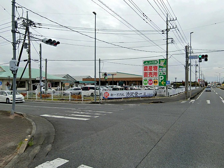 駅に入る脇道からJA直売所を。国道沿いに駐車場、奥に園芸コーナー、裏手には広い市民農園がある。