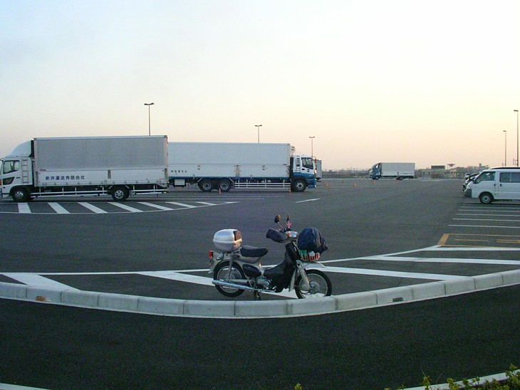 トイレ前から駅舎の方向を。敷地の中央が大型車、駅舎寄りと国道沿いが普通車の駐車スペース。