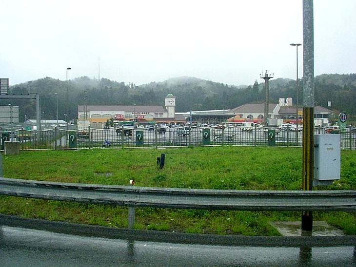出口側からの全景。手前右に「奈良市都祁情報館」、駐車場を挟んで食事処や物販などの並ぶ施設群。