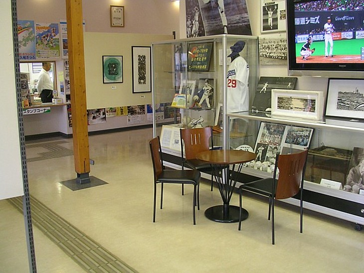 休憩室兼・情報コーナー。事務所が隣接して便利だが、リラックスして過ごせるとは言えない。