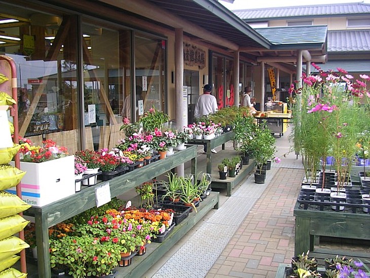 春から秋には多様な花鉢が駅舎を彩る。蓮沼地域も温暖な気候を利用した花卉園芸農家が多い。