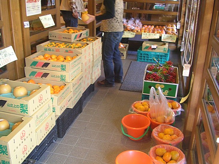 幹線道路から遠いローカルな環境だが買物や食事処の人気が高く、休日には近在の客でかなり混雑する。
